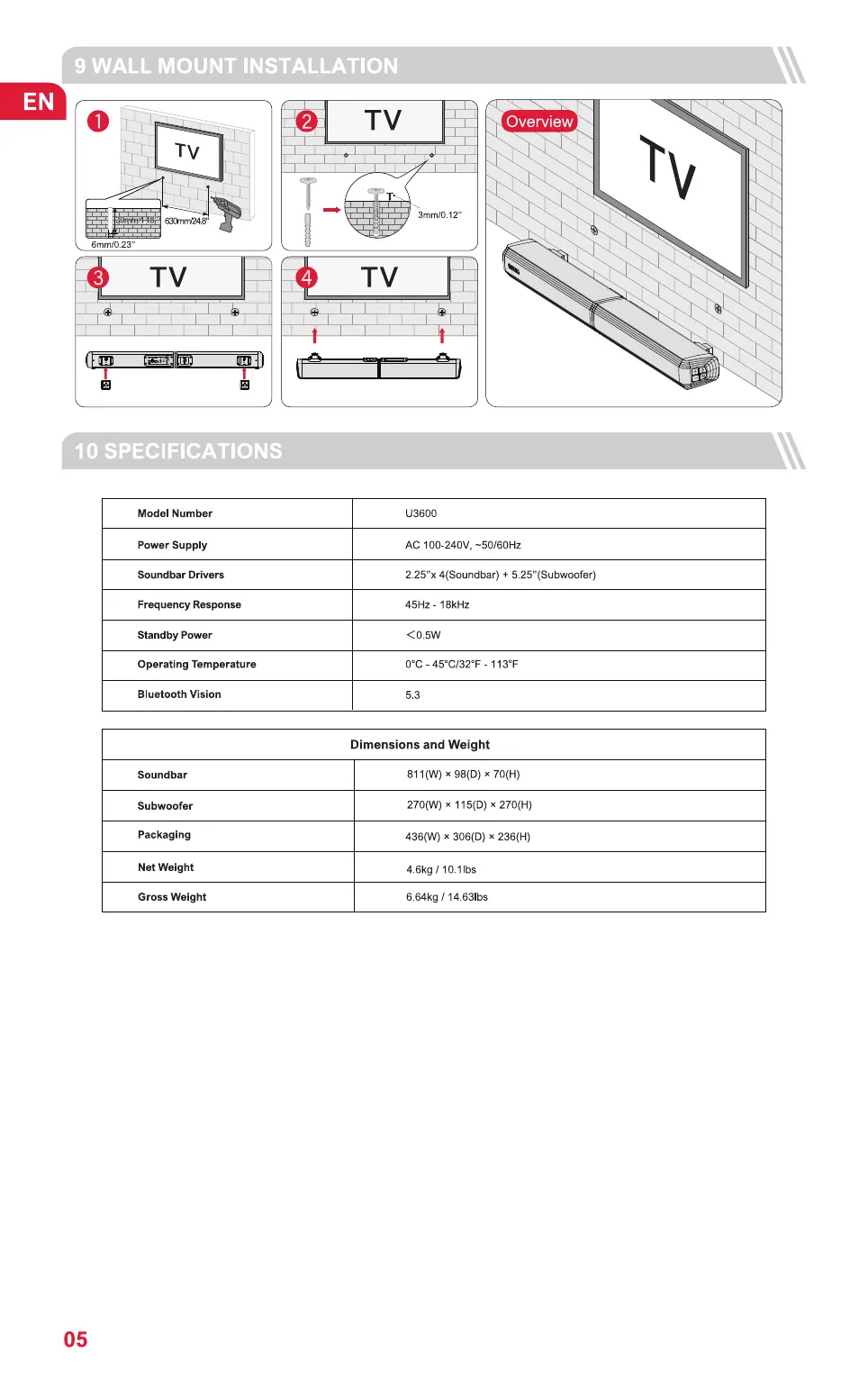 2.25"x 4(S0undbar) + 5 25"(Subw00fer)