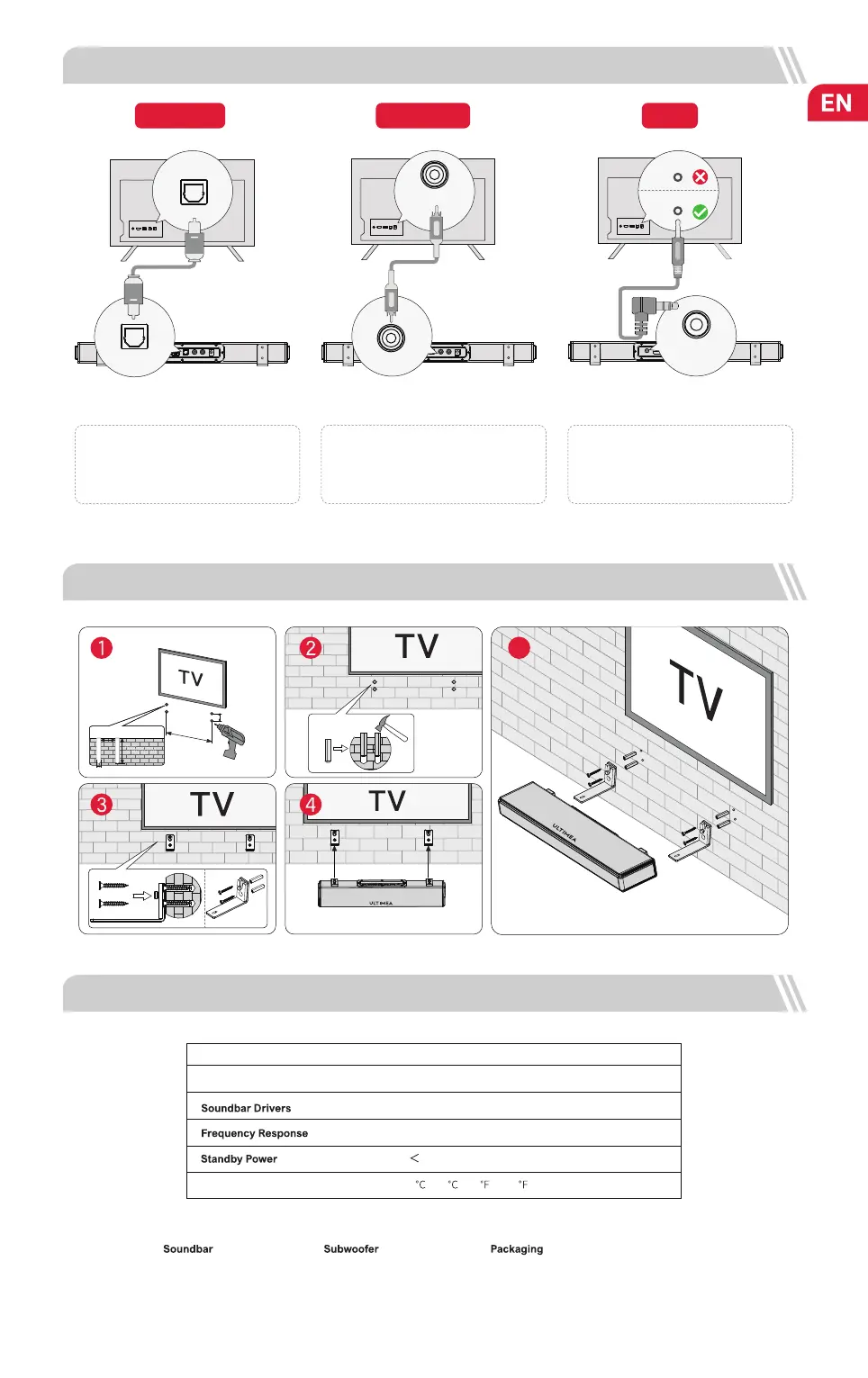 (1.2” x 3.8”) x 2 (Soundbar) + 5.25” (Subwoofer)