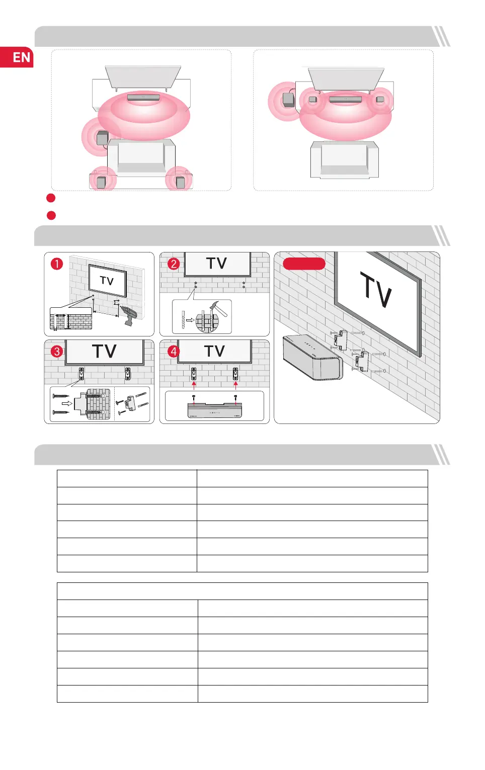 Note: Wall-mounted surround speakers follow the same conguration as shown in the above pictures