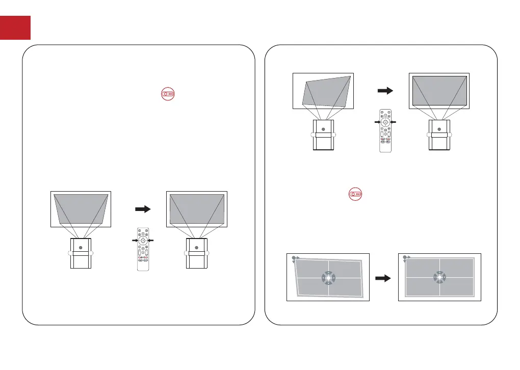 投写角度によって投写映像が2軸に伸びたり歪んだりする