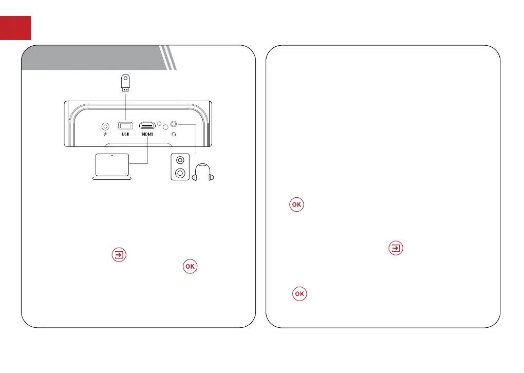 ムページに入り、[HDMI]を選択し、[OK] を押します。