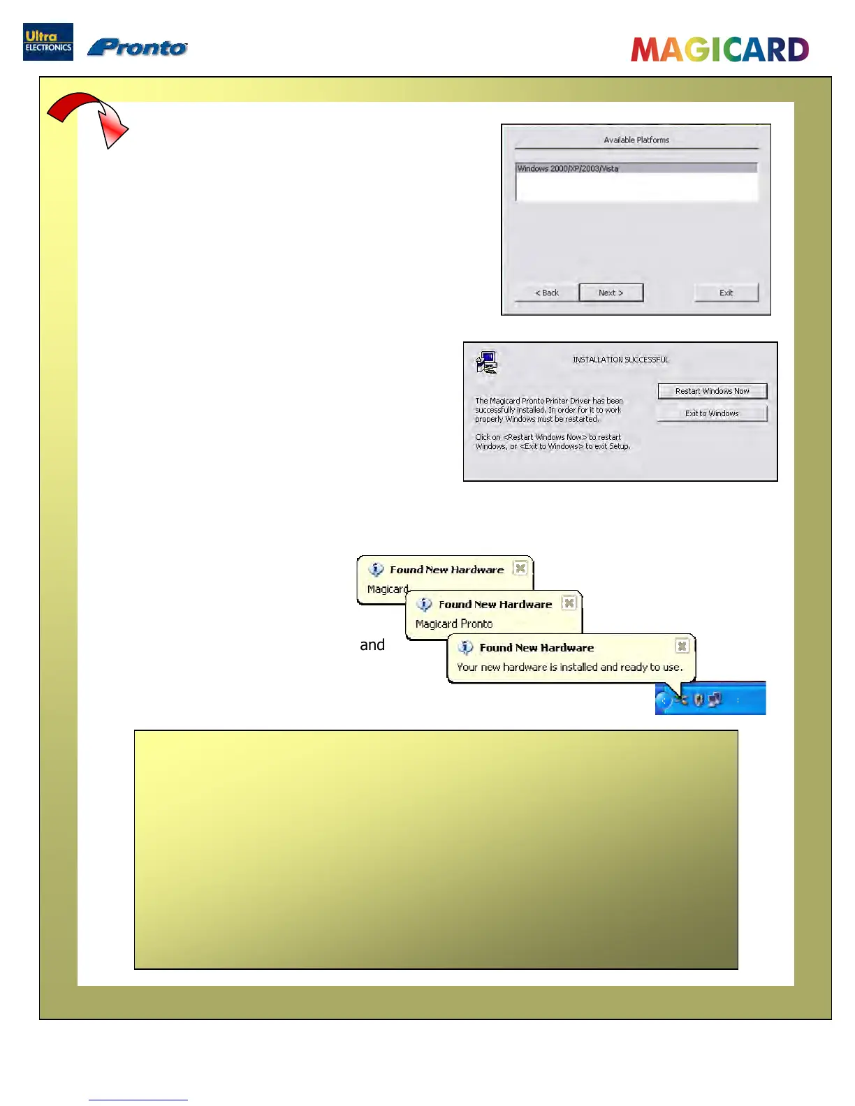 The Driver is not fully installed until the Pronto Printer is connected to the PC via the