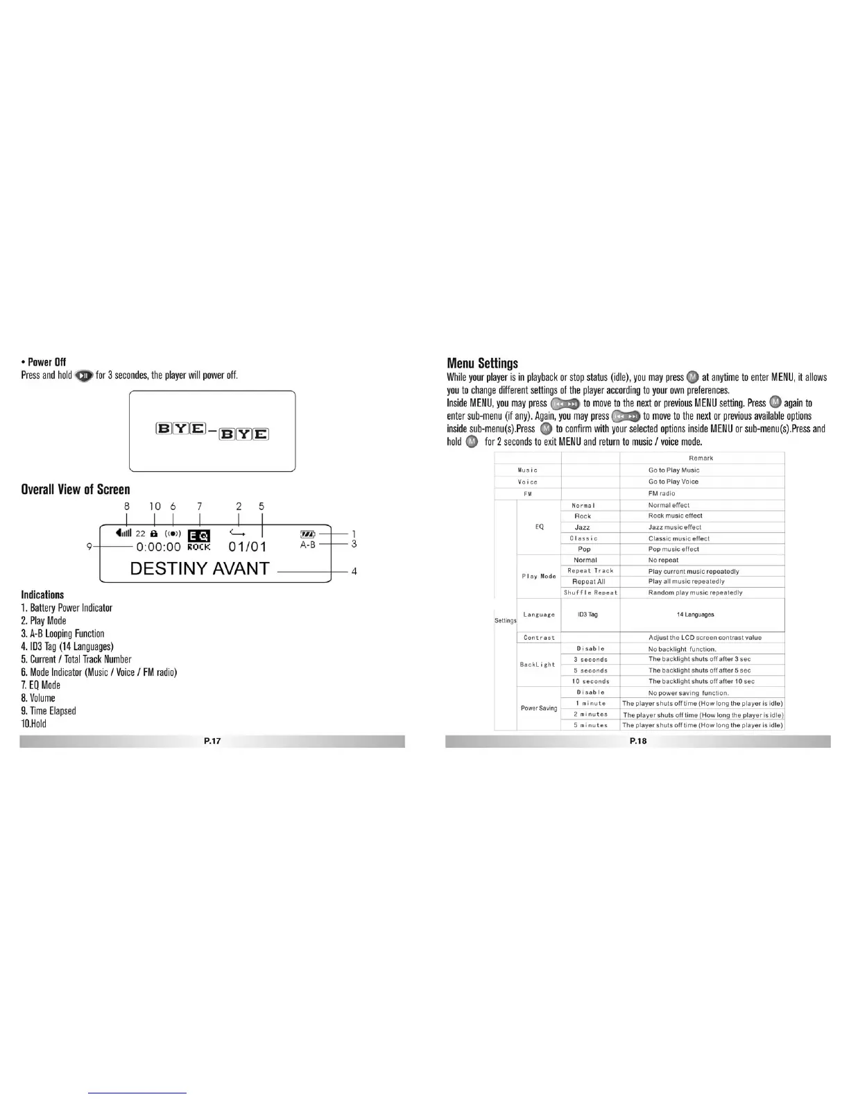 Ultra electronics MP3 Player - MP3 Player Screen Display; Screen Indicator Definitions; Configuring MP3 Player Menu Settings; Music, Voice, and FM Radio Settings