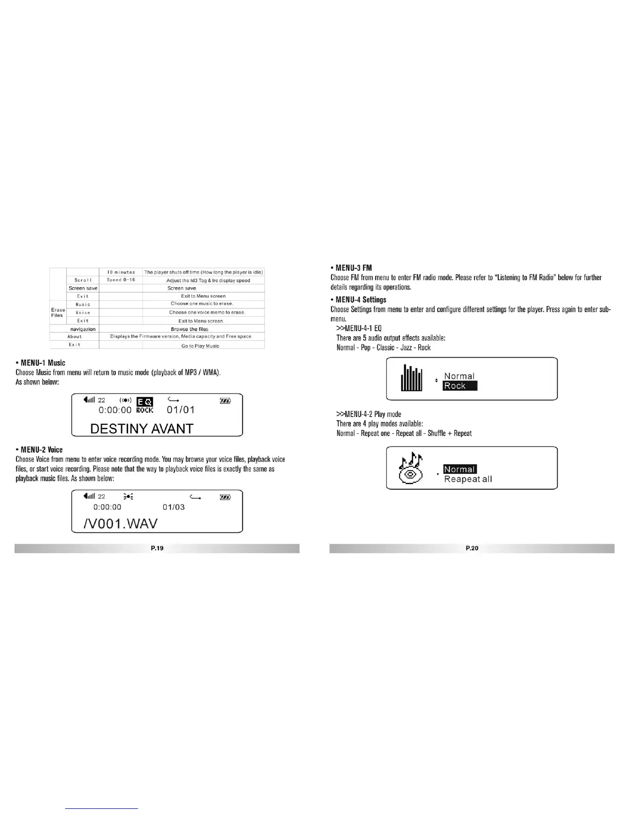 Ultra electronics MP3 Player - MP3 Player Menu Settings: EQ and Play Modes; Adjusting EQ and Playback Modes