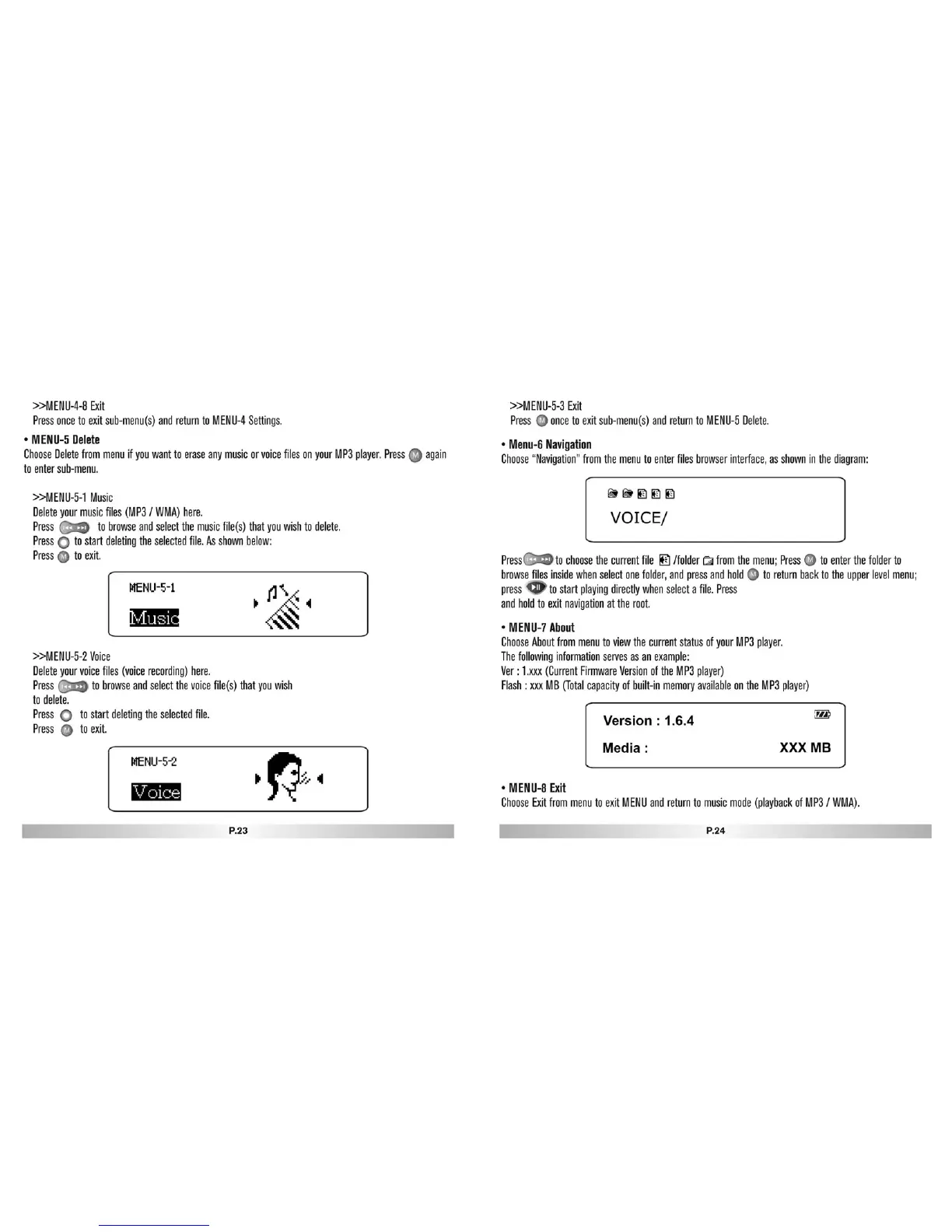 Ultra electronics MP3 Player - MP3 Player Menu Options: File Management; Deleting Files and Navigating Folders