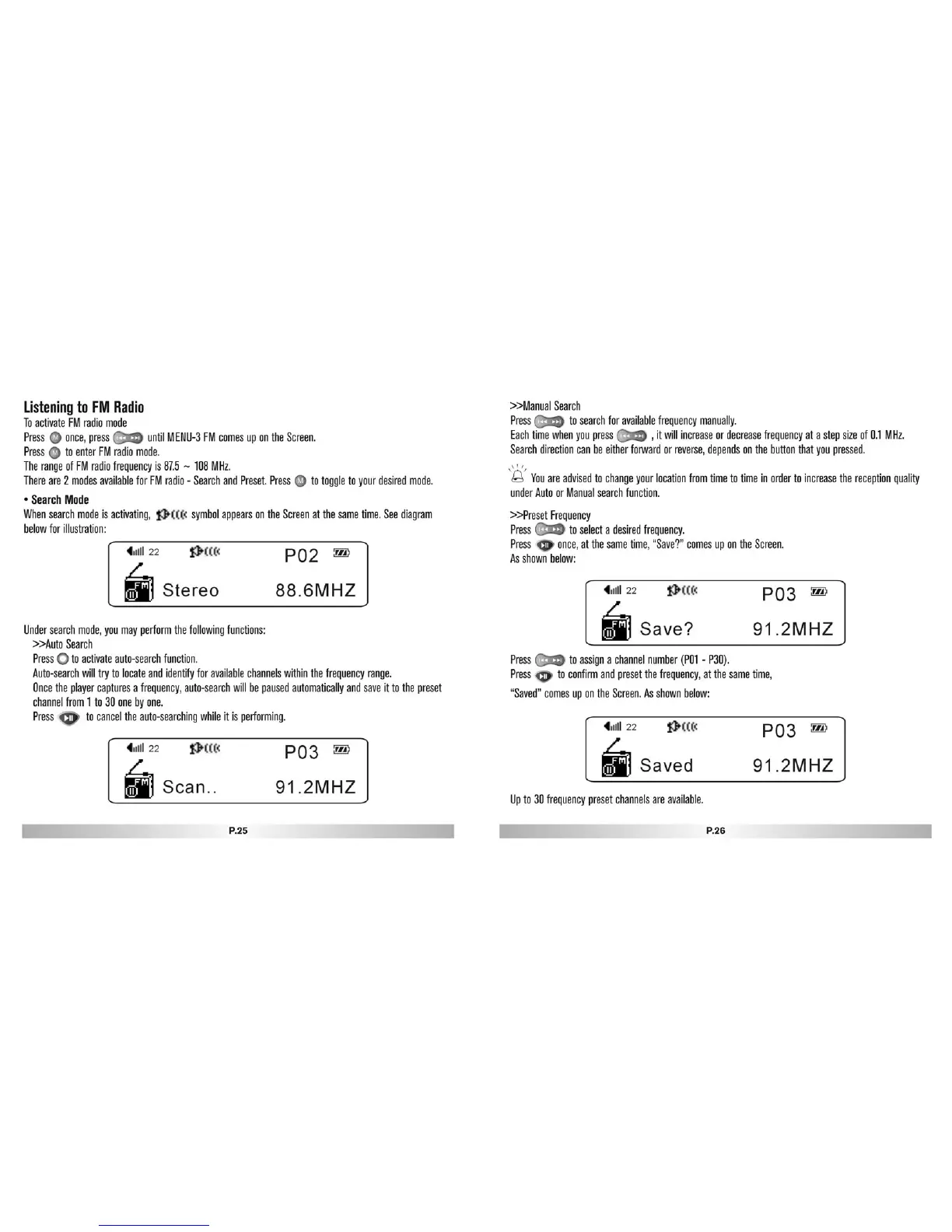 Ultra electronics MP3 Player - Using the FM Radio