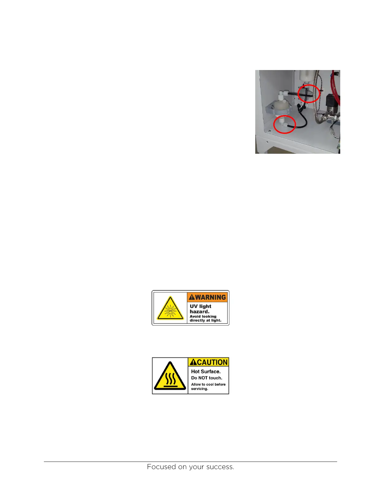 The UV light module gets very hot during use. It is very important to take great care and