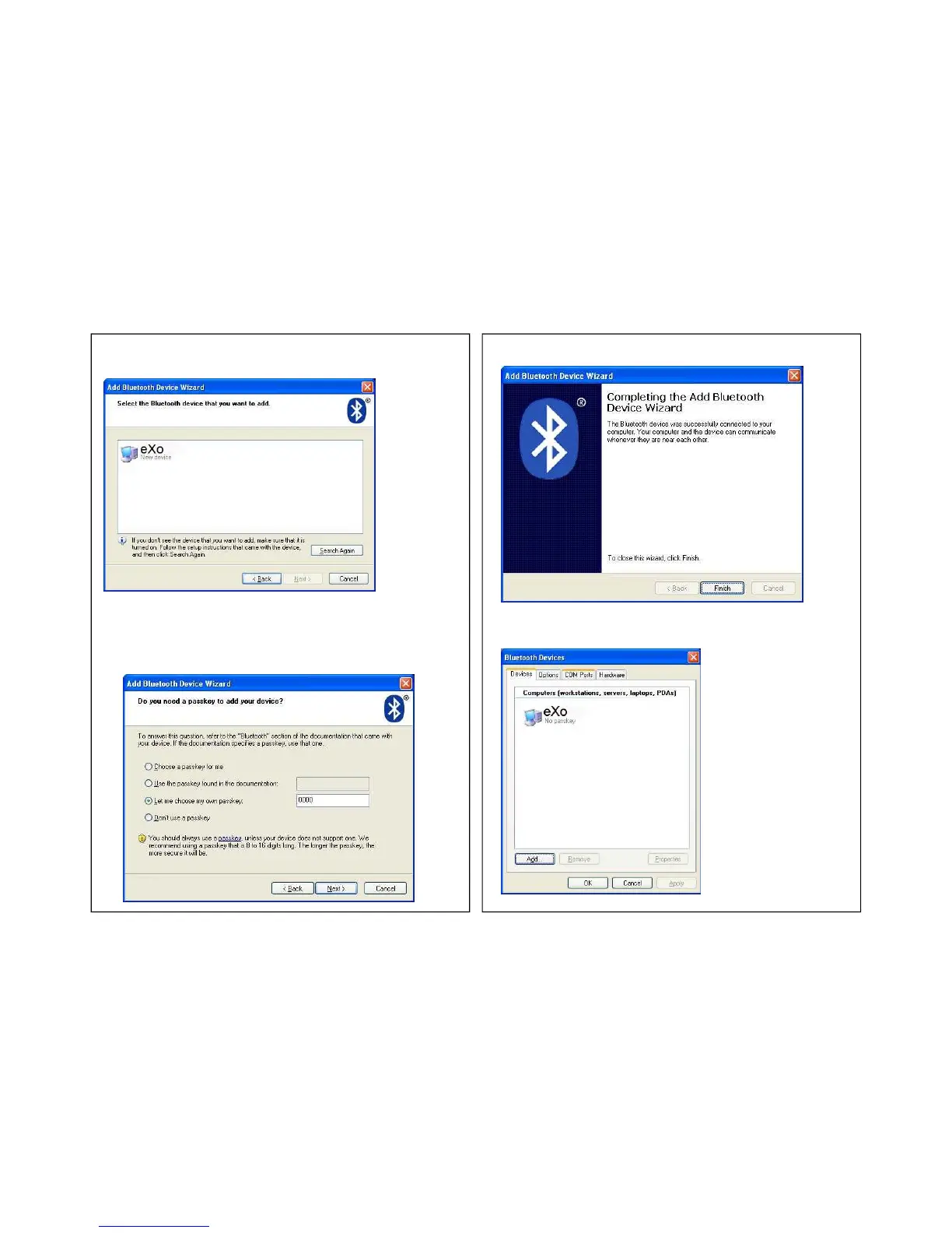 If the eXo is not found, confirm if it is in the pairing mode by ensuring the device is in