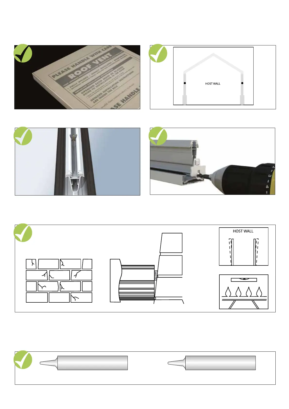 Correct alignment in this area is critical to a successful installation - Plumb frames/level ridge.