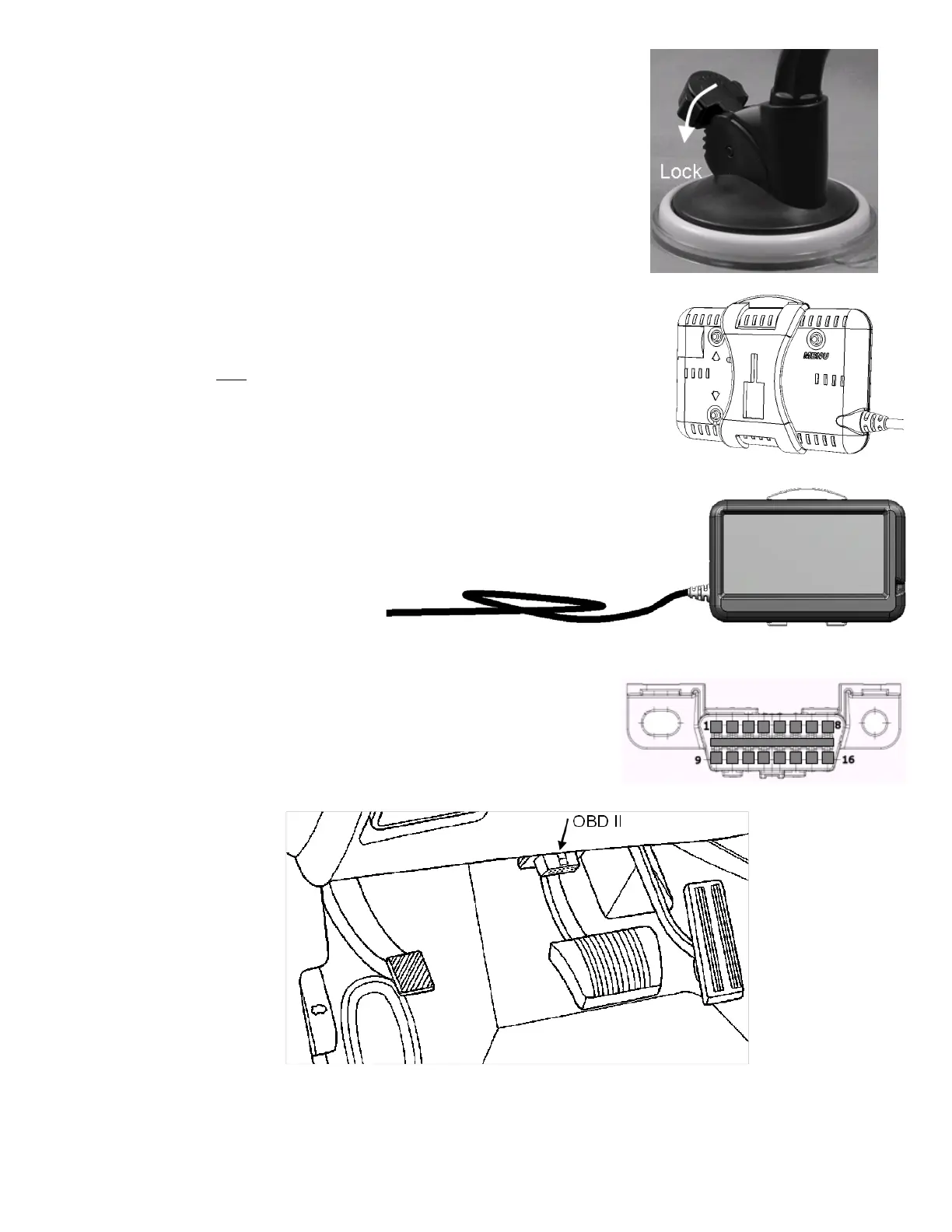 3. Once the OBD-II connector is located, route the OBD-II cable so that it does not block or interfere with foot controls. The