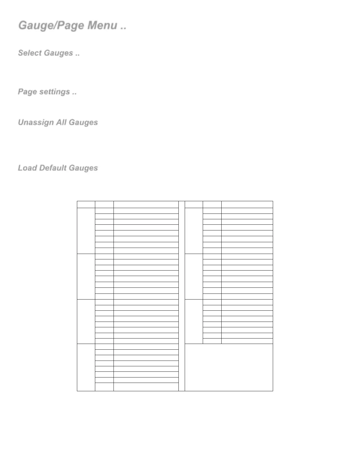 Used to select and assign gauges to pages and zones. See the sections; Gauge Pages and Zones and Gauge Zone