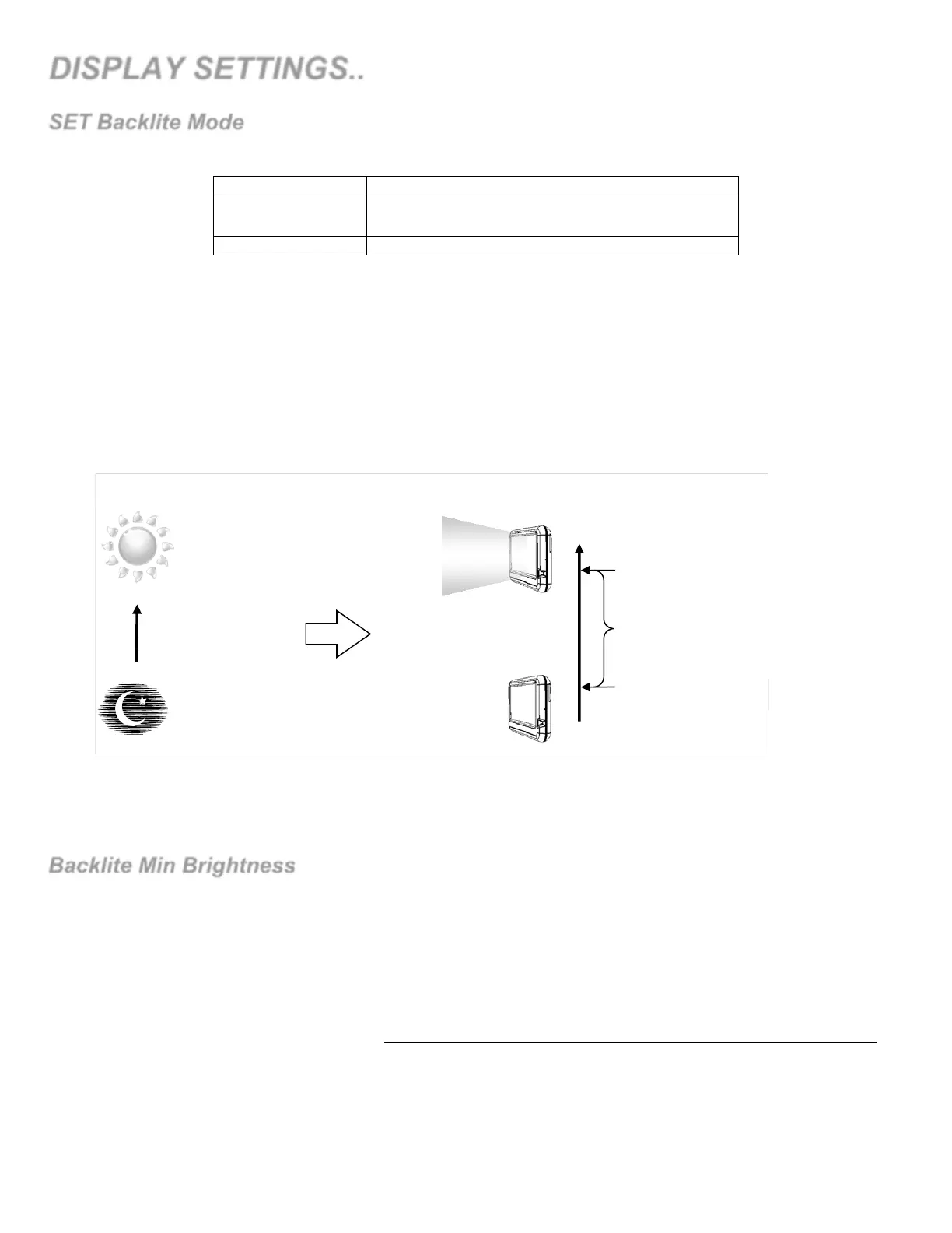 these limits. The limits are set via the menu items; Backlite Min Bright and Backlite Max Bright.