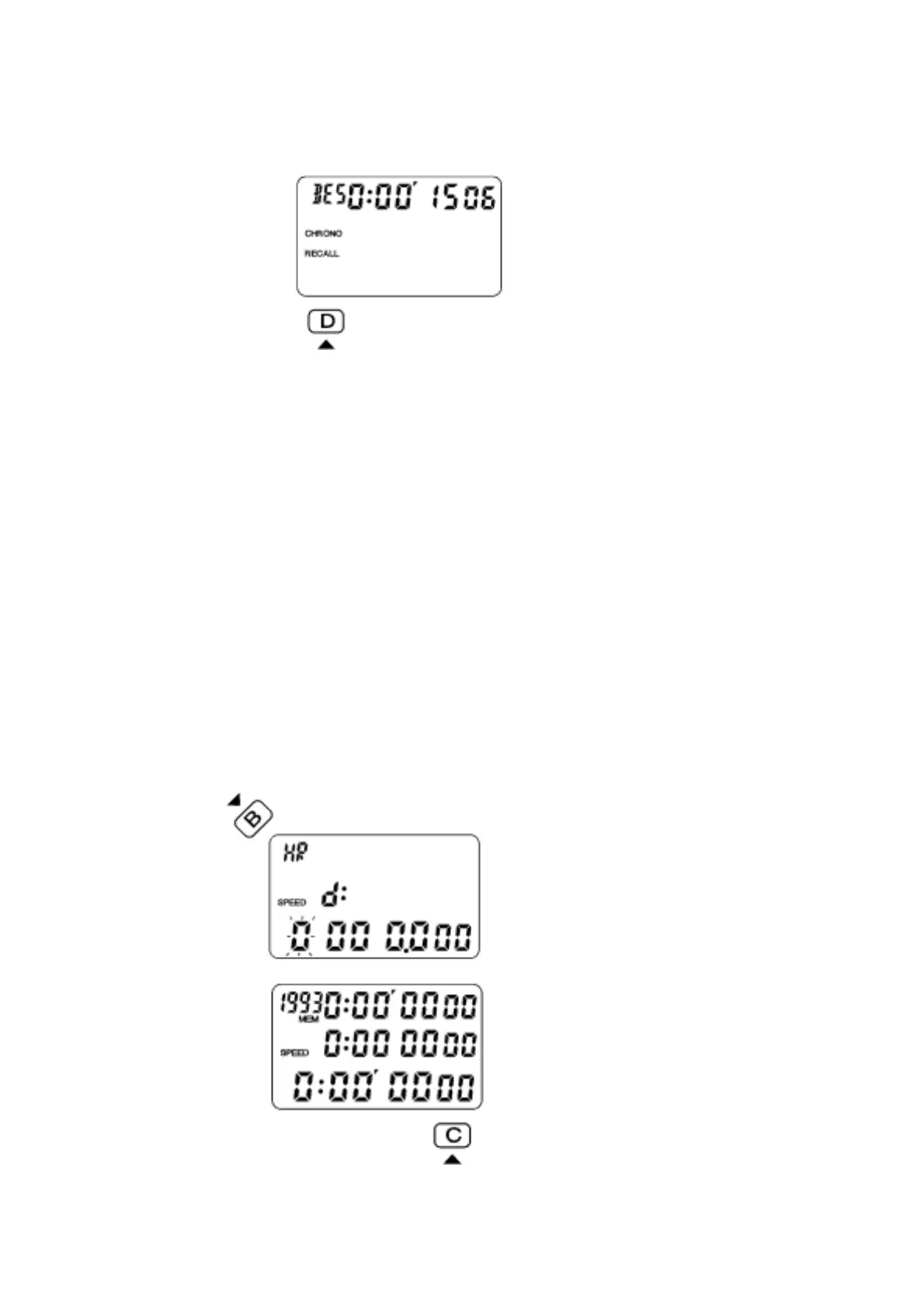When the distance and time unit are set, press C button to return to the SPEED
