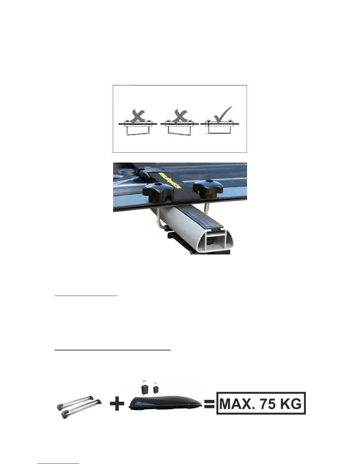 Roof rack weight + Roof box weight + Load = max. 75 KG