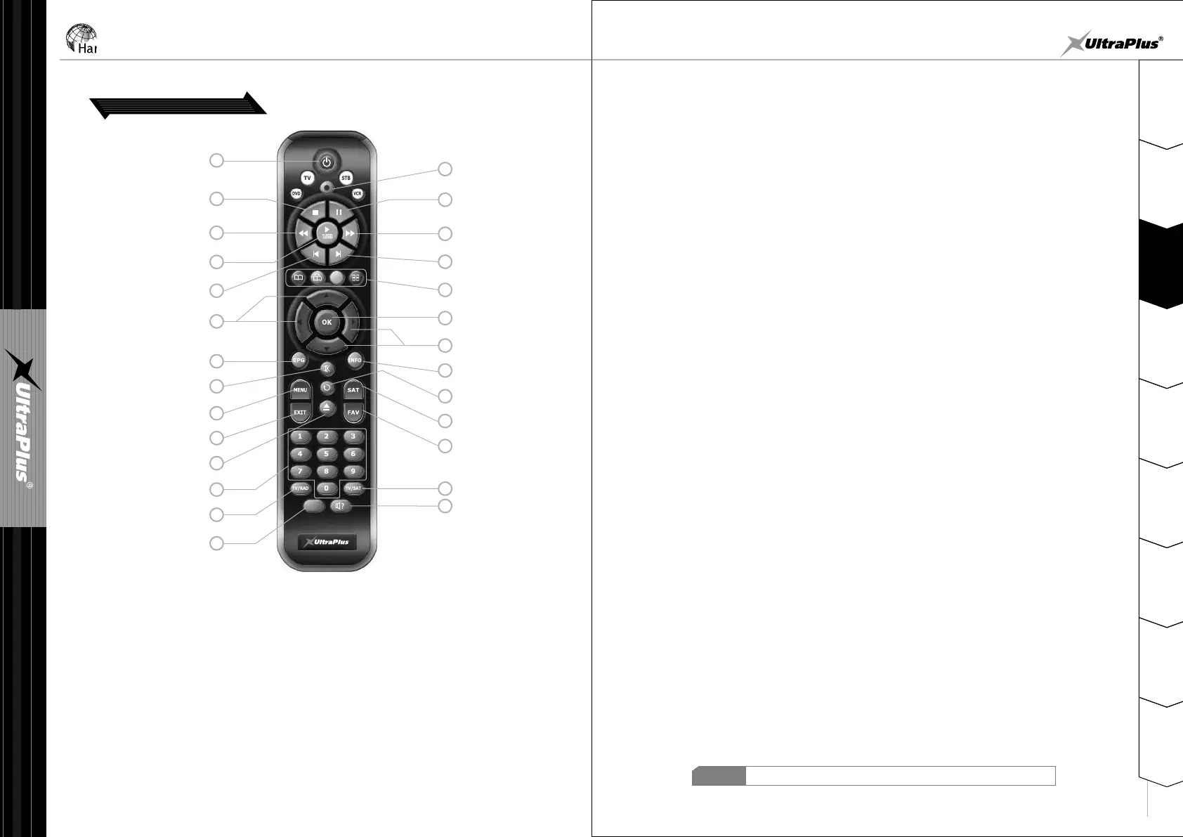 24. TV/SAT : Toggles the TV output source between the satellite input and UHF/VHF