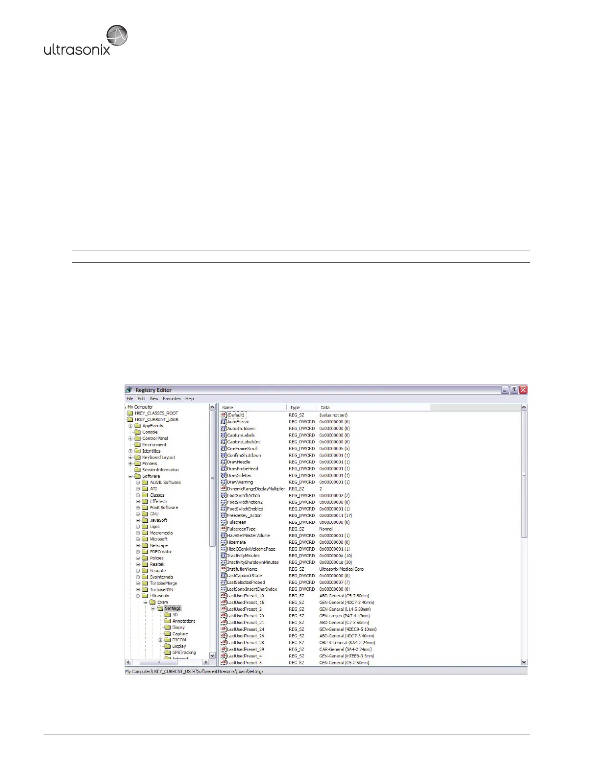 2. In the registry go to HKEY_CURRENT_USER > Software > Ultrasonix > Exam > Settings.