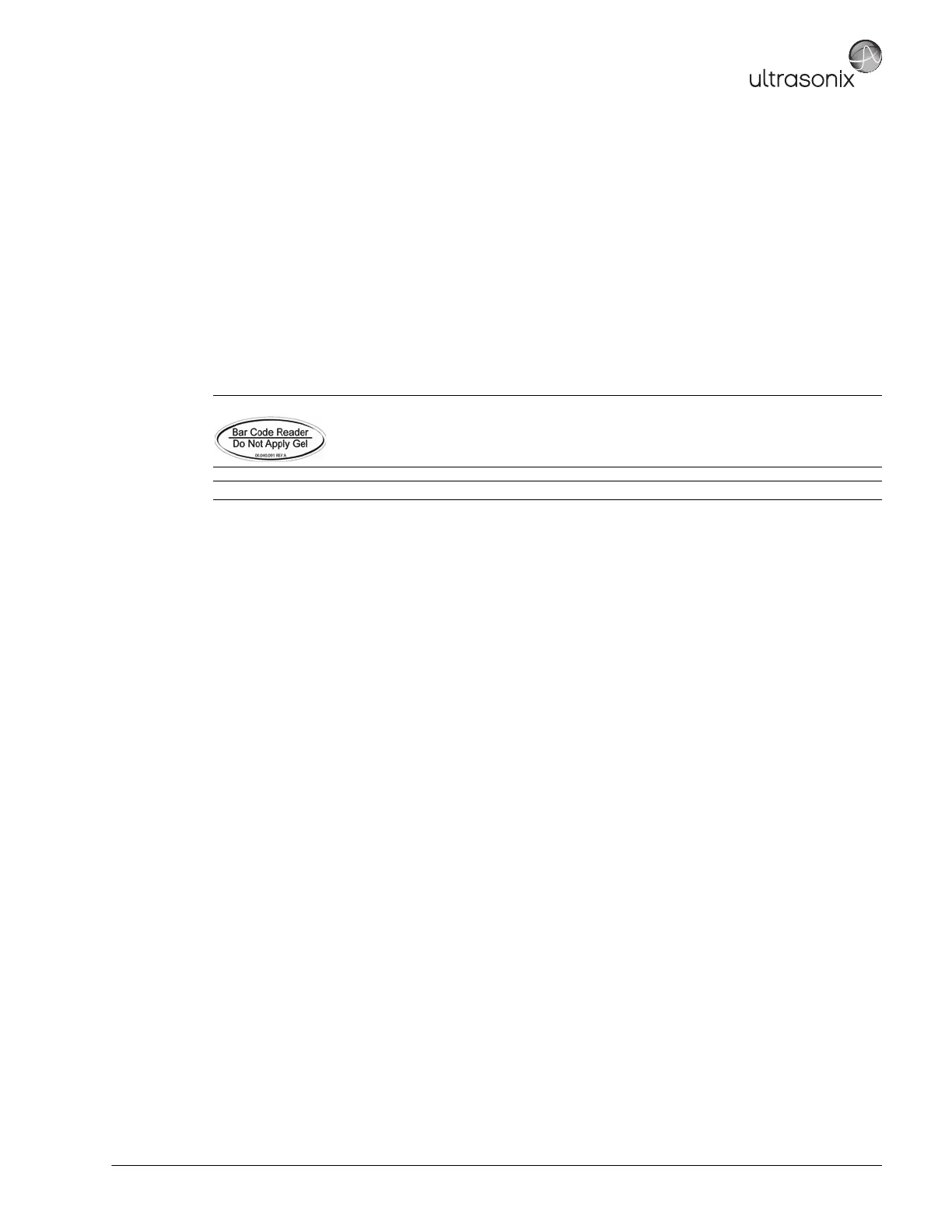 Caution: Do not apply ultrasound gel to the barcode reader.