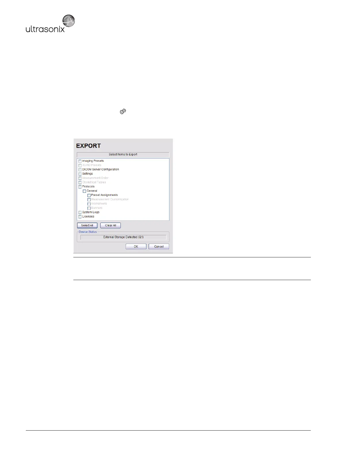 Note: When creating a backup prior to servicing or replacing the modulo, Ultrasonix recommends selecting all