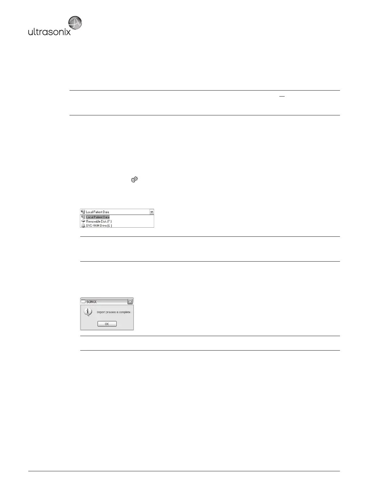 • USB media (memory stick, external hard drive, etc.) containing previously exported data.