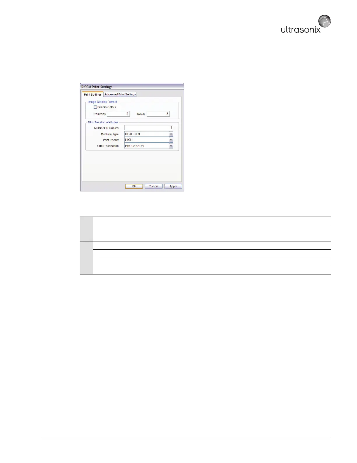 Table 8-8: DICOM Print Settings – Print Settings