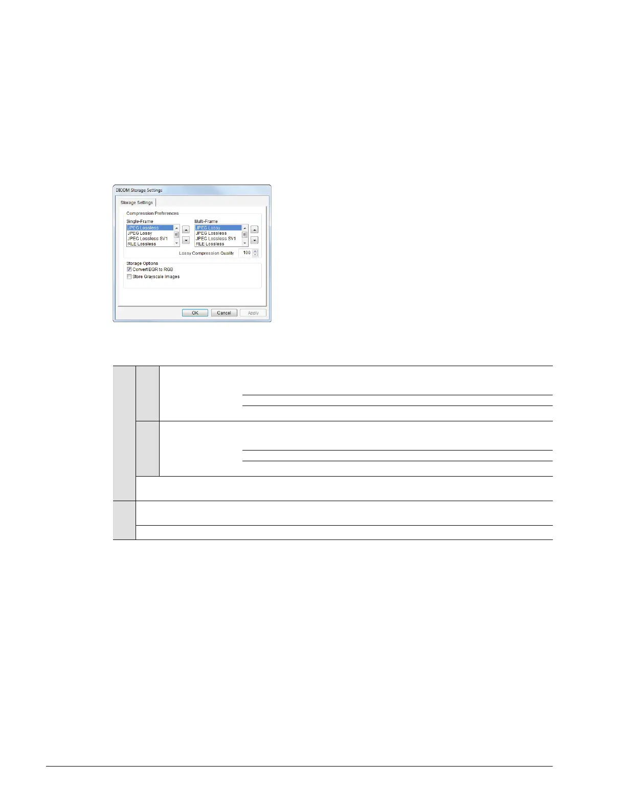 Table 8-3: DICOM Storage Settings – AE Configuration – Storage Settings