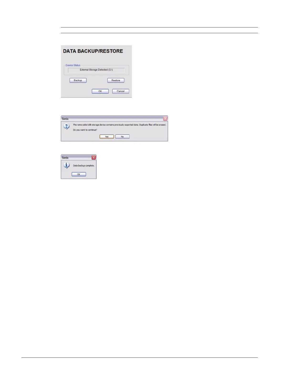 10. If the USB device already contains patient data, the following message will be displayed. Select OK to continue