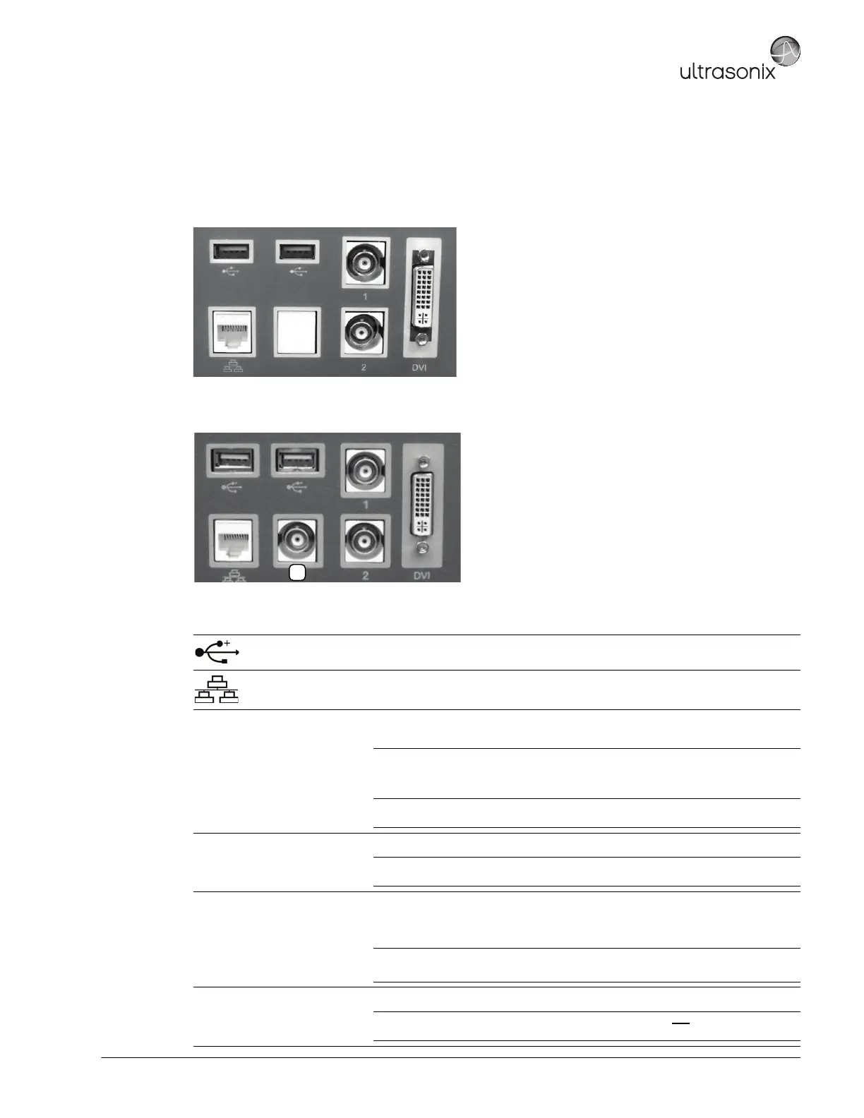 Use to connect Ultrasonix-approved USB devices (e.g., printer, barcode reader,