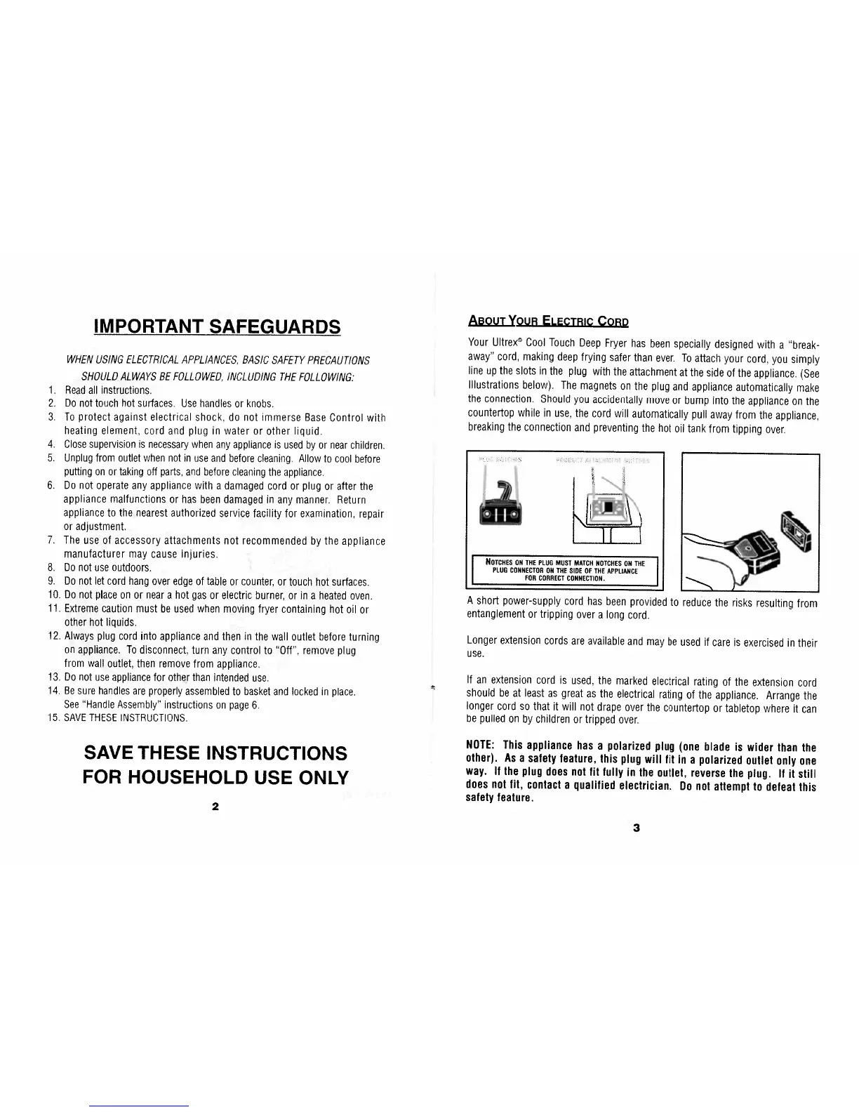 ultrex 08398 - Important Safety Information; General Safety Precautions; Electric Cord Features