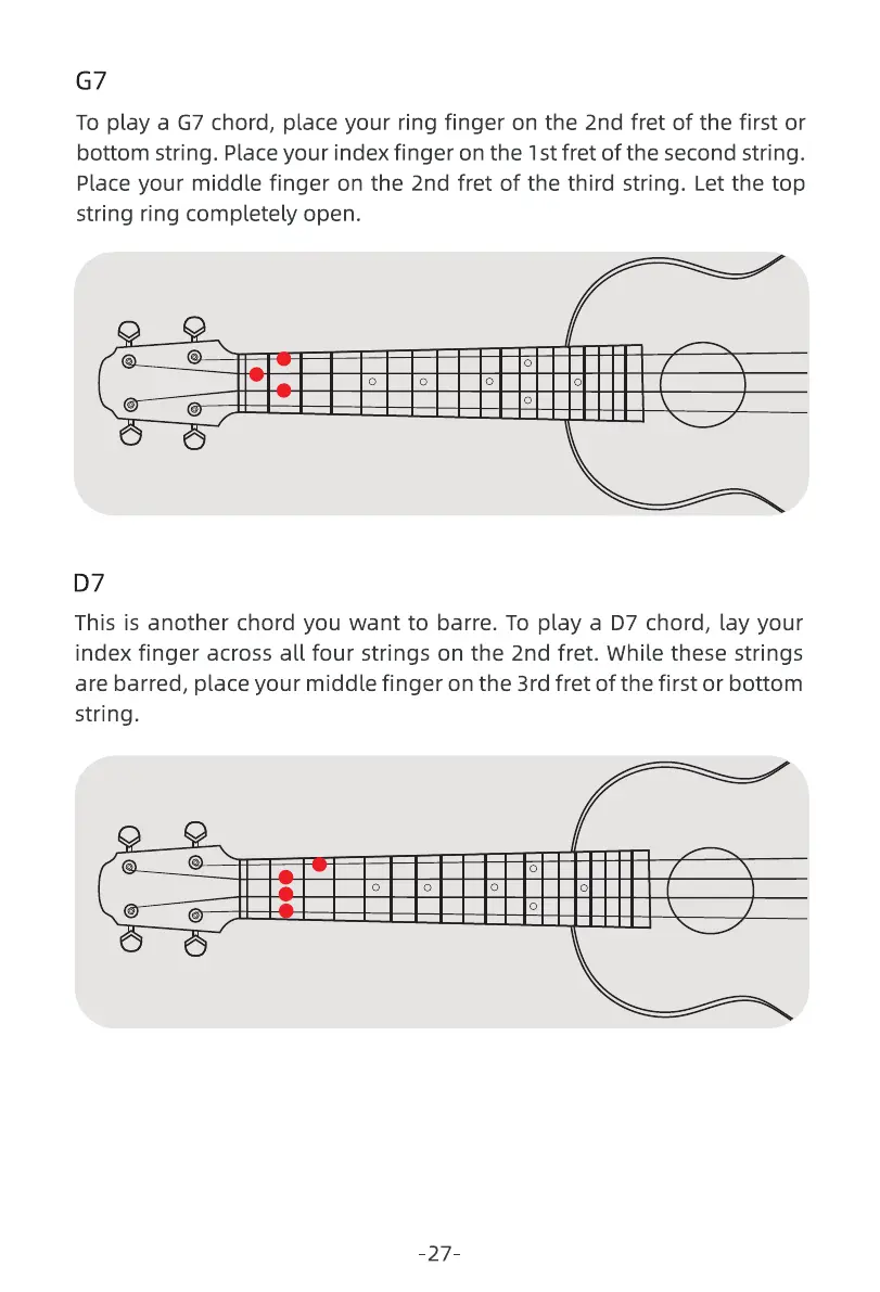 This is another chord you want to barre. To play a D7 chord, lay your