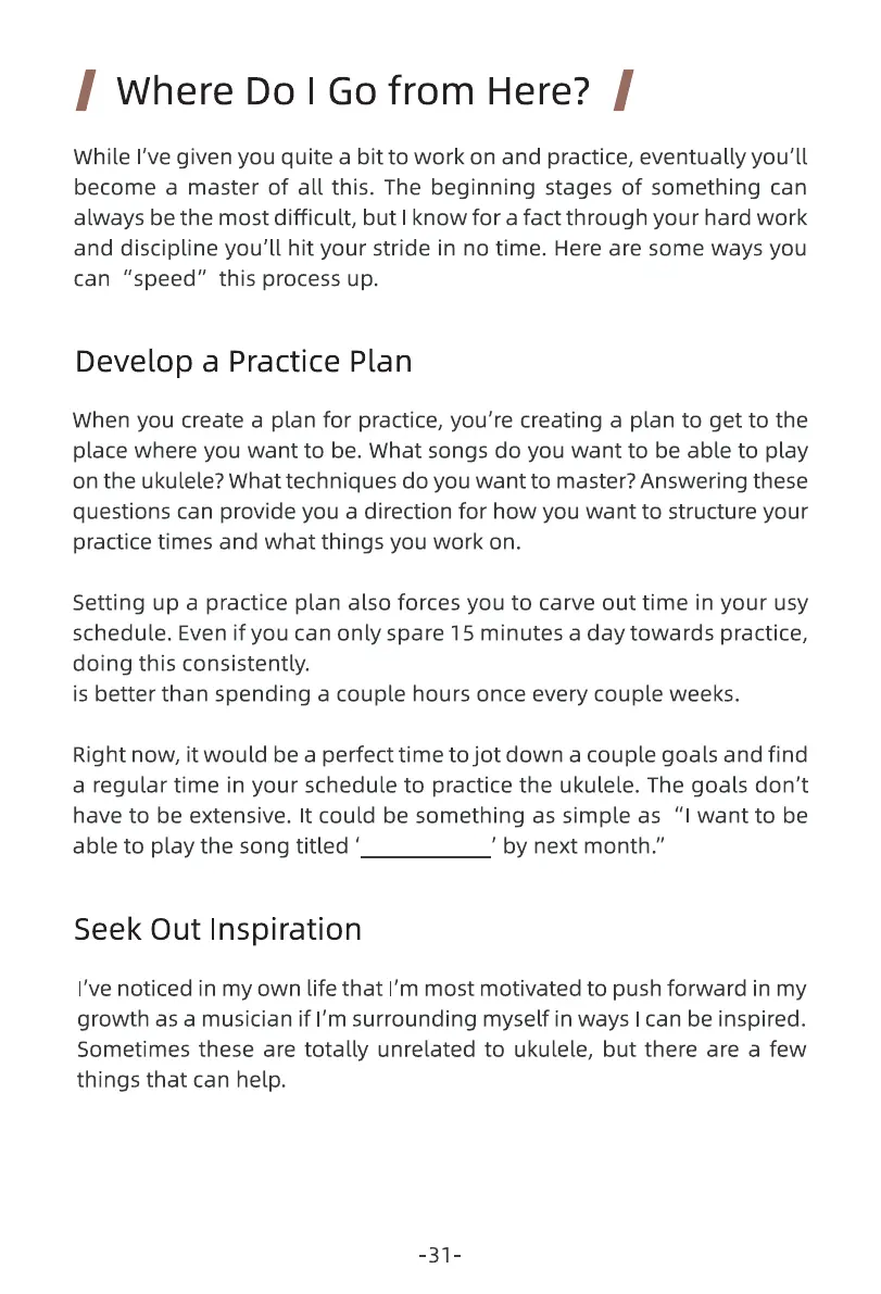 a regular time in your schedule to practice the ukulele. The goals don't