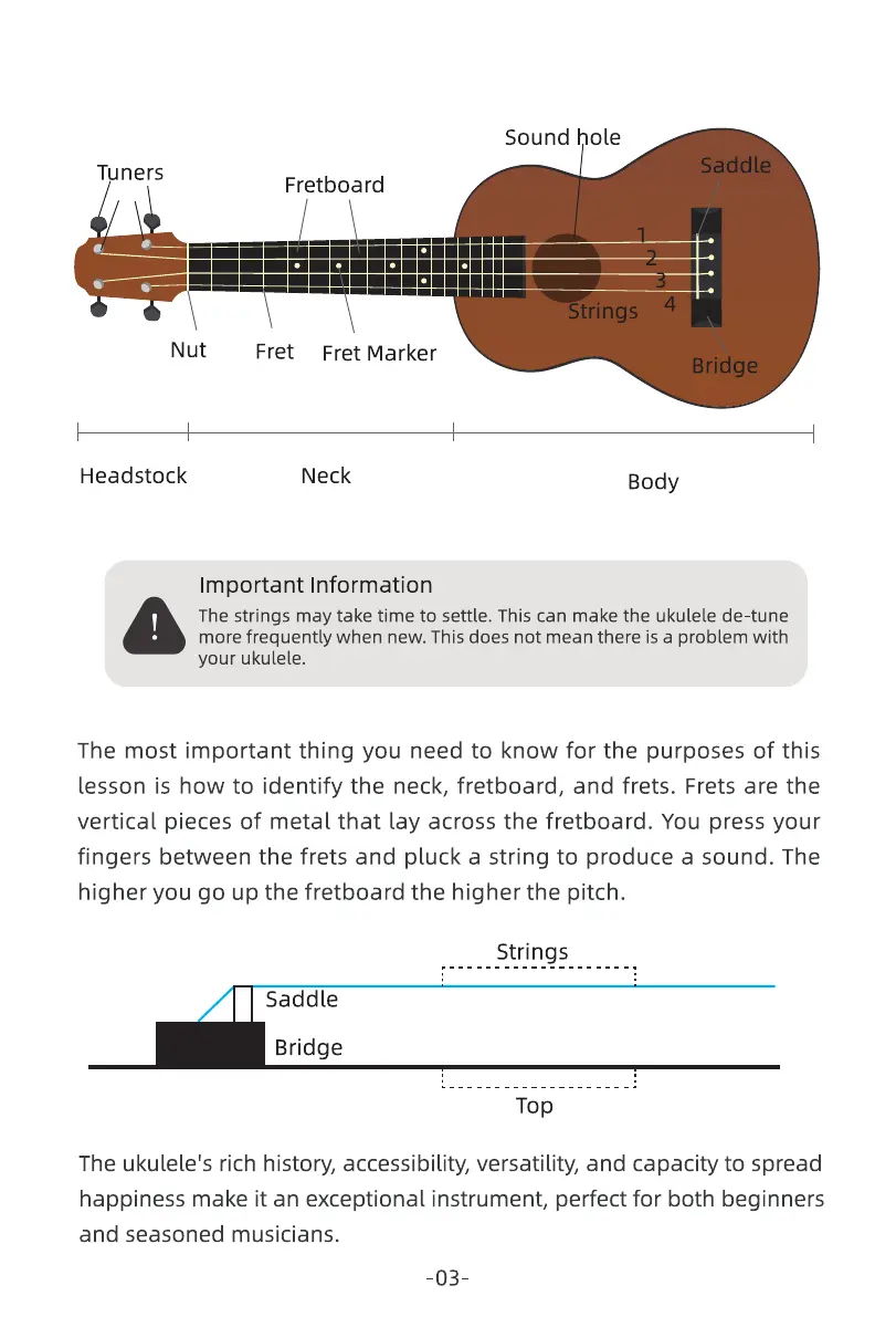 lesson is how to identify the neck, fretboard, and frets. Frets are the