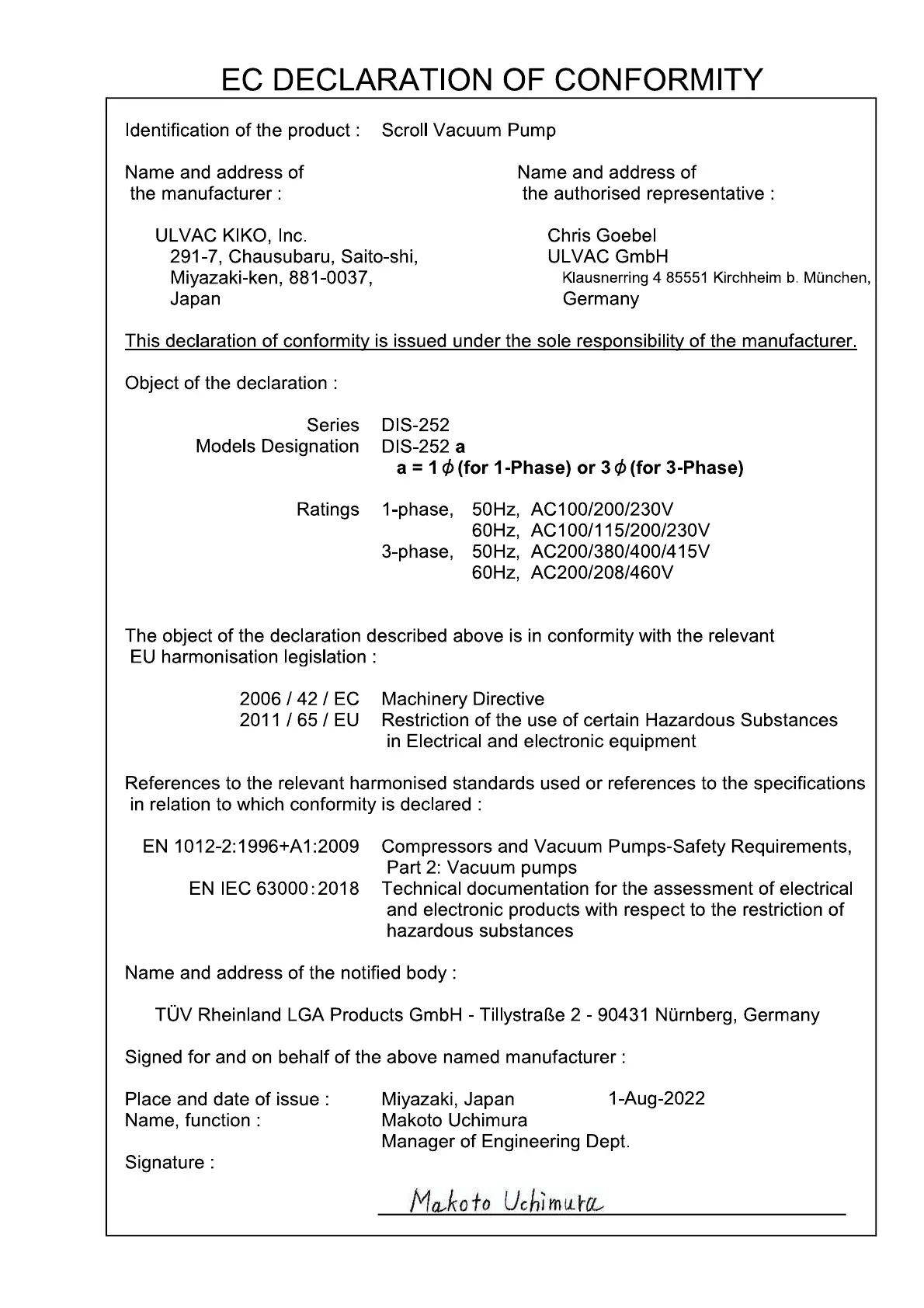 291-7, Chausubaru, Saito-shi, ULVAC GmbH