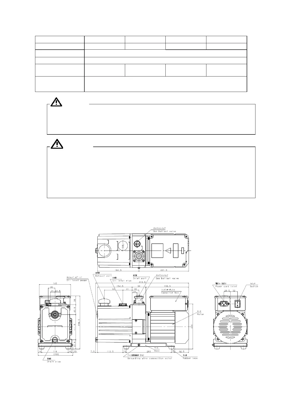 Fig. 1 GHD-101 Sealed rotary vacuum pump dimension drawings