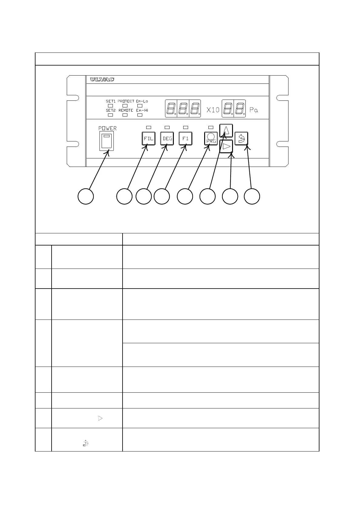 Used to turn on/off degassing. The first press on the key turns
