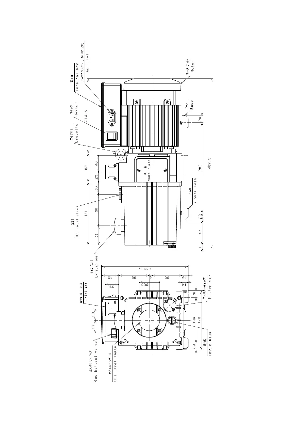 Fig. 1 Dimensional drawing of GLD-137CC oil sealed rotary vacuum pump