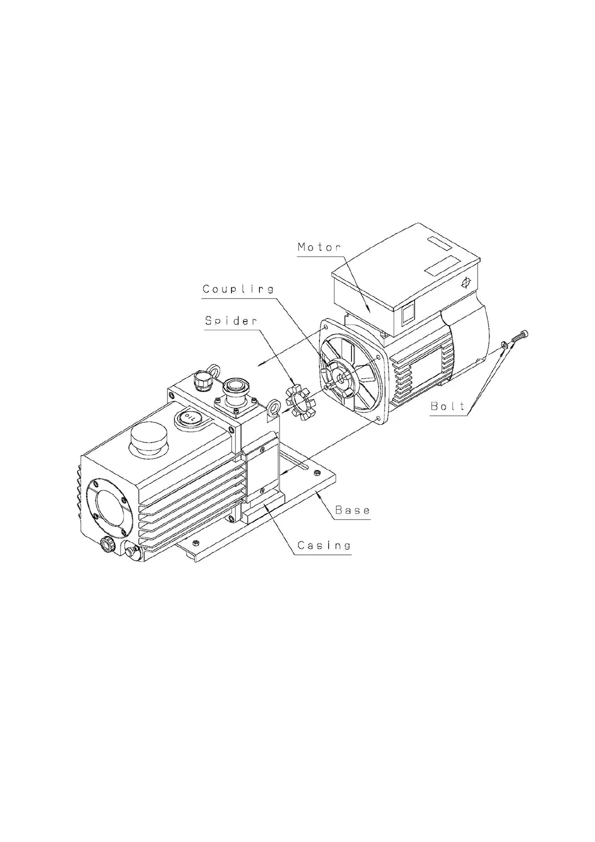 To take out the spider, remove the four bolts which fix the motor to the pump main unit, and