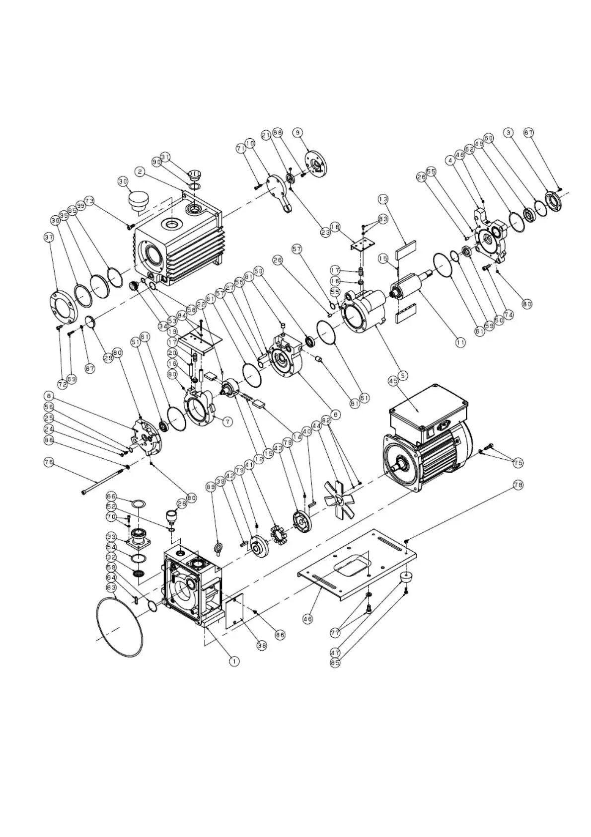 Fig. 13 Disassembly drawing of GLD-202BB oil sealed rotary vacuum pump