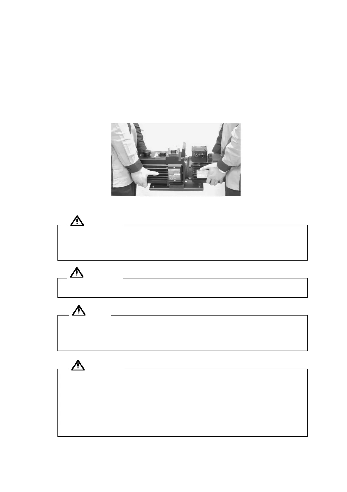 Since the pump weighs over 20 kg, do not lift or transport it by yourself.