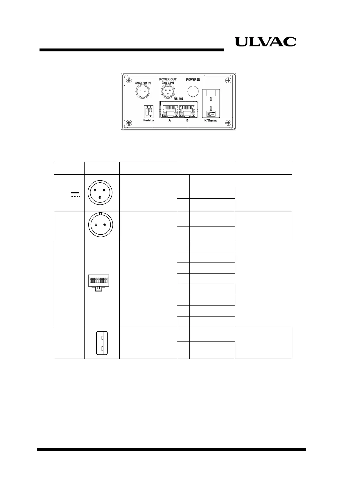 Ulvac MBD-D - Connector Specifications; Figure 3-1 MBD-D Rear Panel; Table 3-1 Connectors Input; Output Pins
