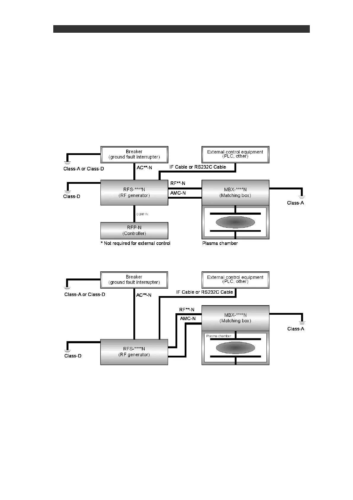 cables used. Please prepare the wiring between the matching box and the chamber and the GND