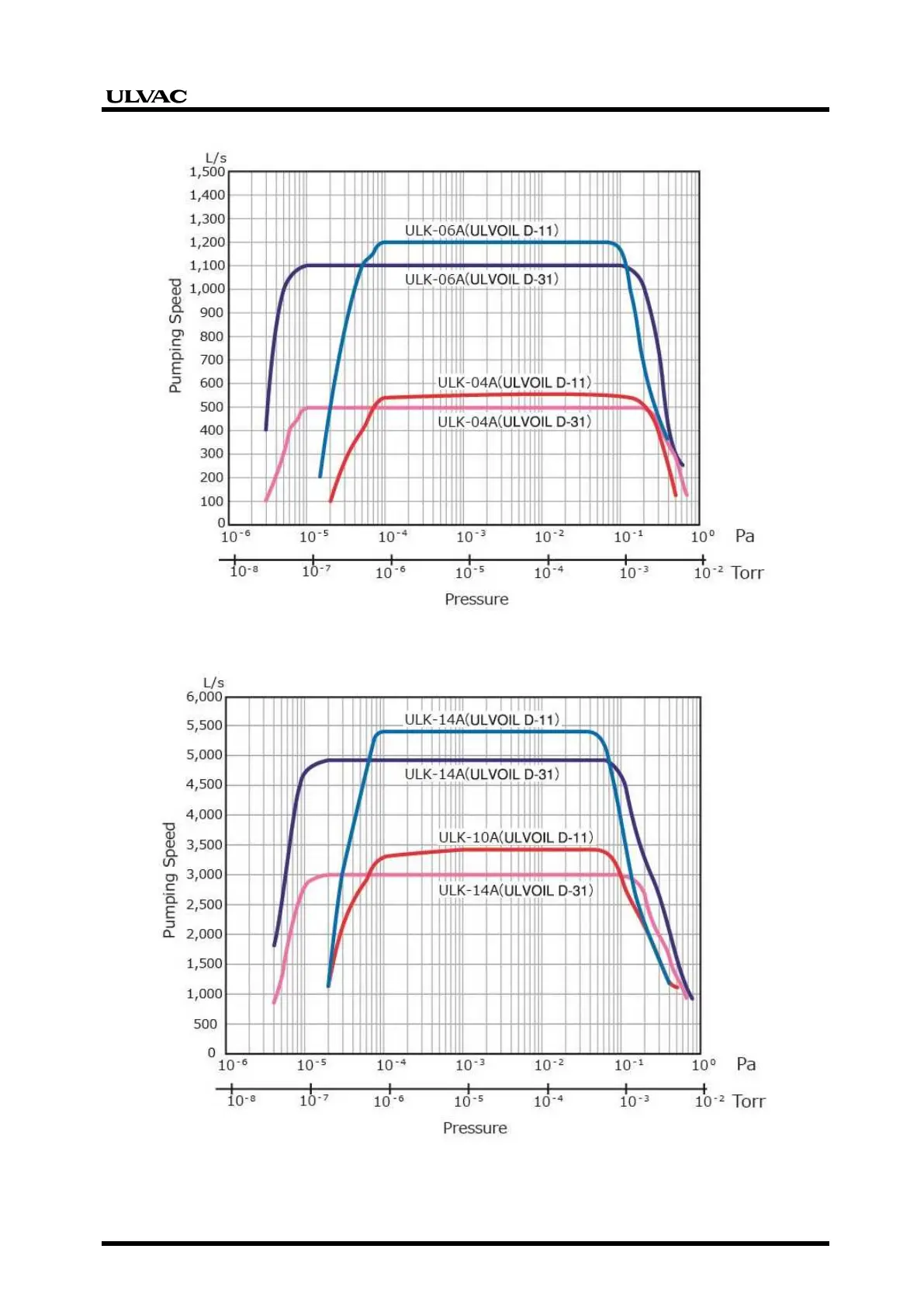 Graph 1: Pumping speed curve for ULK-04A/ULK-06A