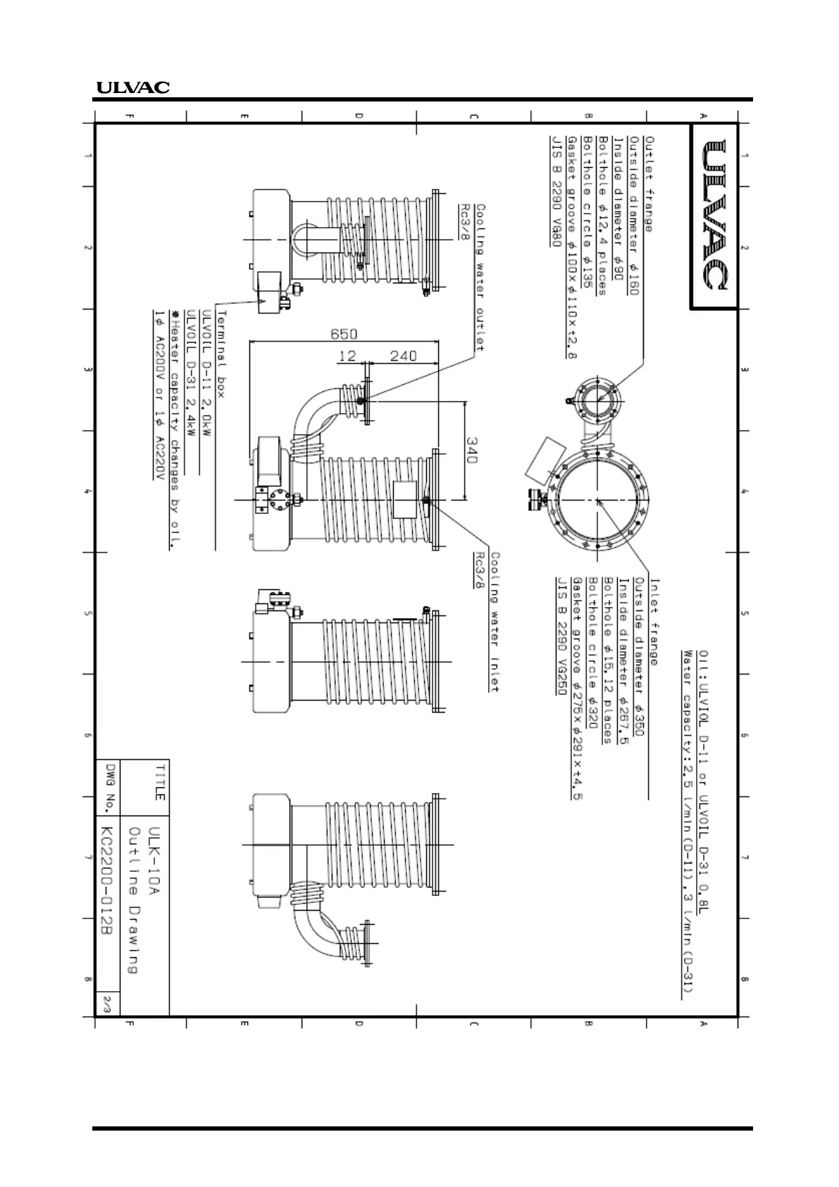 Figure 4: Oil diffusion vacuum pump Model No. ULK-10A, Dimensional appearance drawings