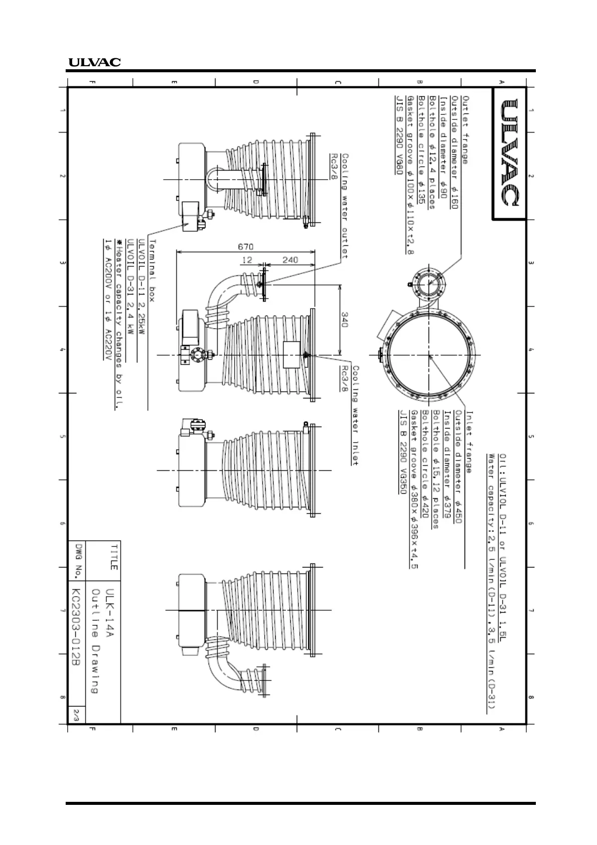 Figure 5: Oil diffusion vacuum pump Model No. ULK-14A, Dimensional appearance drawings