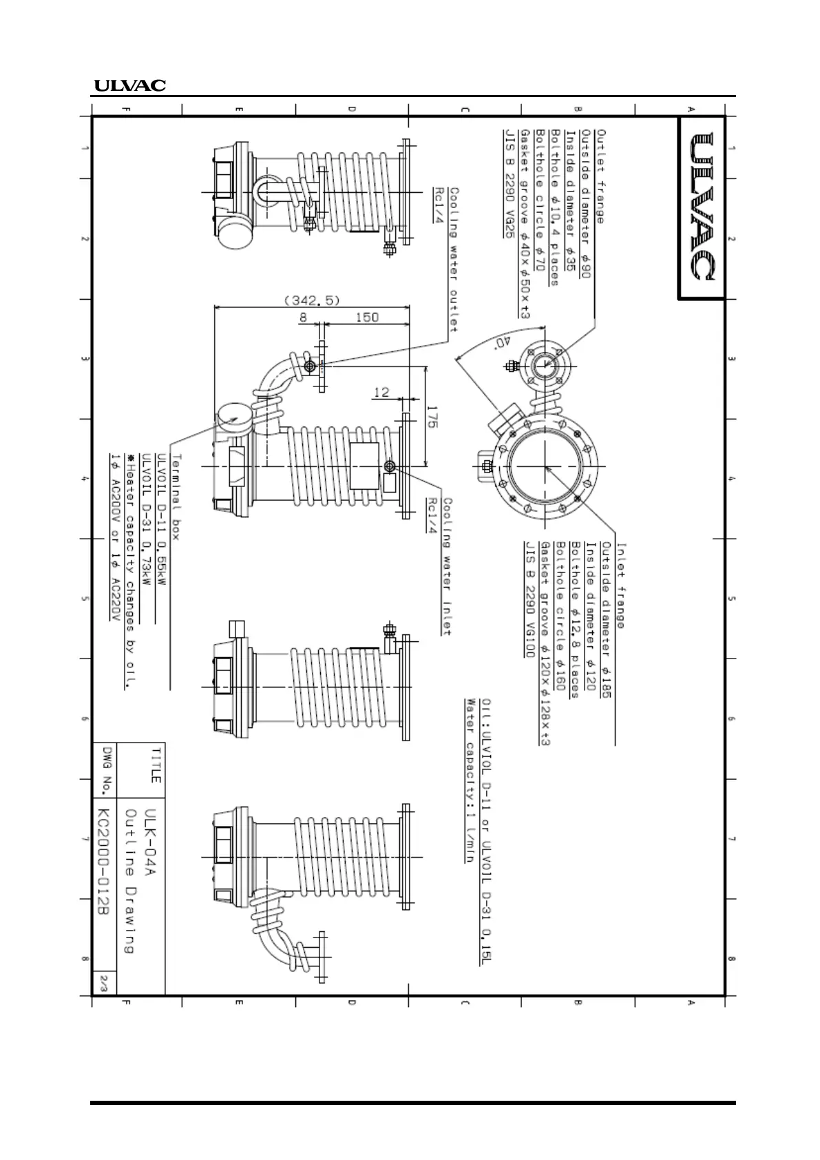 Figure 2: Oil diffusion vacuum pump Model No. ULK-04A, Dimensional appearance drawings