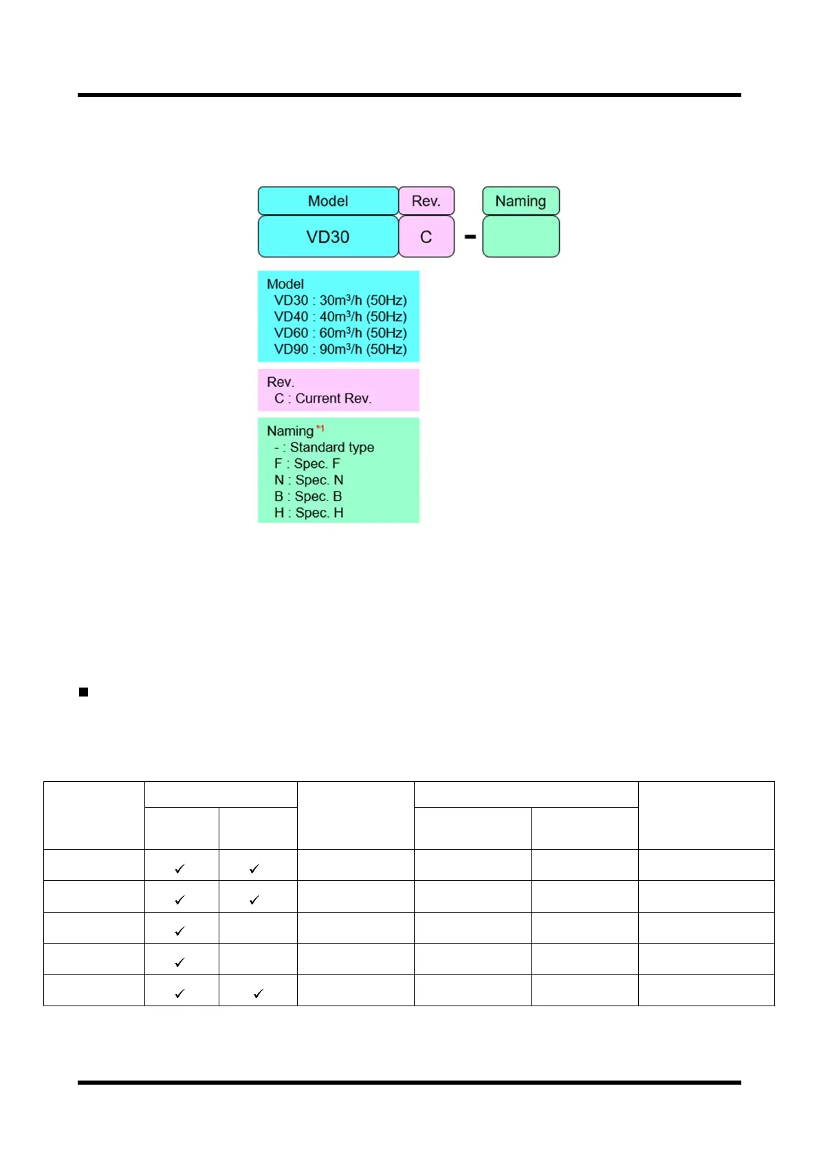 *1 There is not any naming for standard spec. Spec. F, N, B or H is selectable as option.