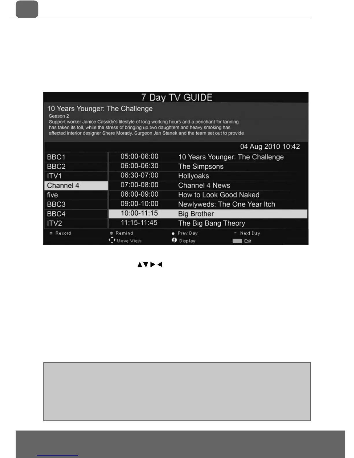 3) Press [EXIT] to exit the 7 day TV Guide.