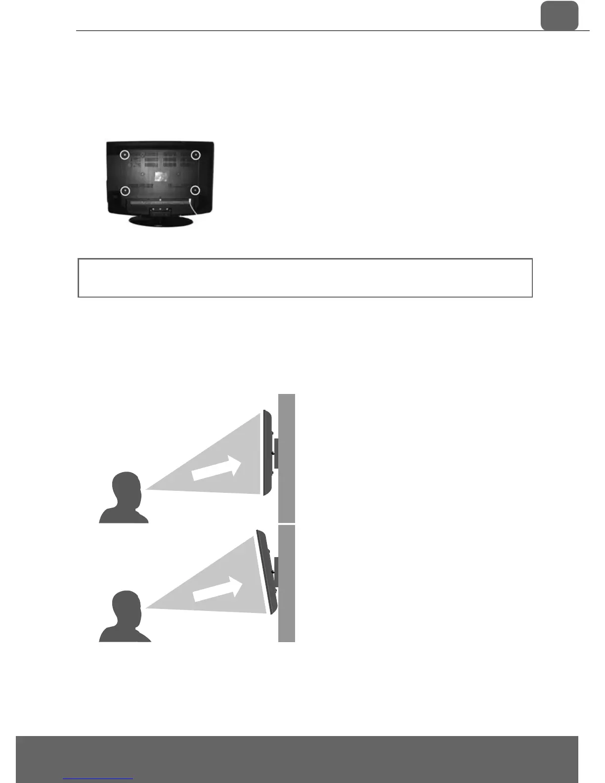 Optimum viewing - if wall mounting the TV higher than eye level, the TV should be tilted downwards so