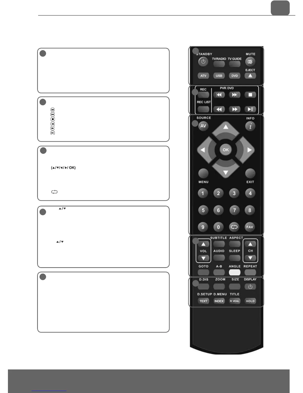 ANGLE - DVD mode - Select different angle of DVD (if available)
