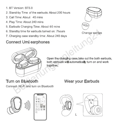 UMI W5s - Connect Umi Earphones; Turn on Bluetooth; Wear your Earbuds