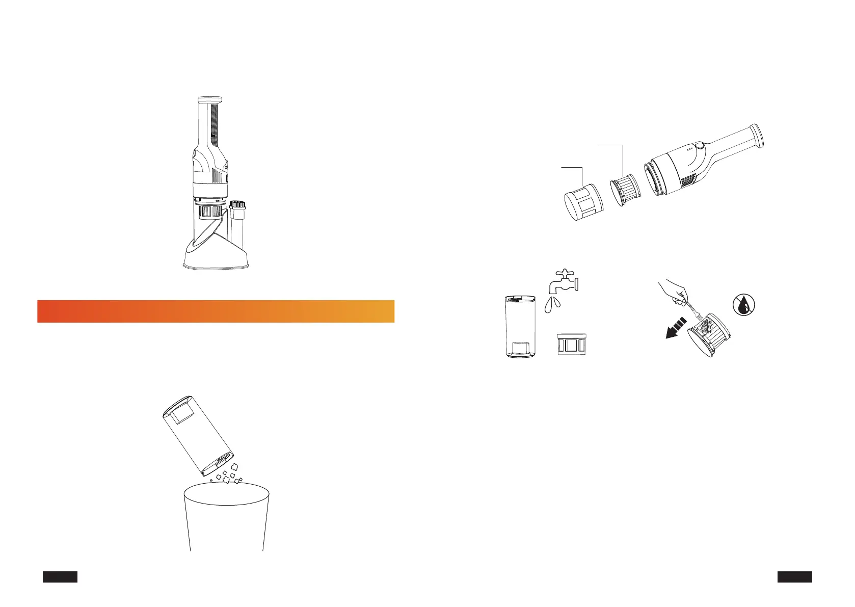 Note: In order to maintain the suction power of the handheld vacuum, please clean the dust bin and filter